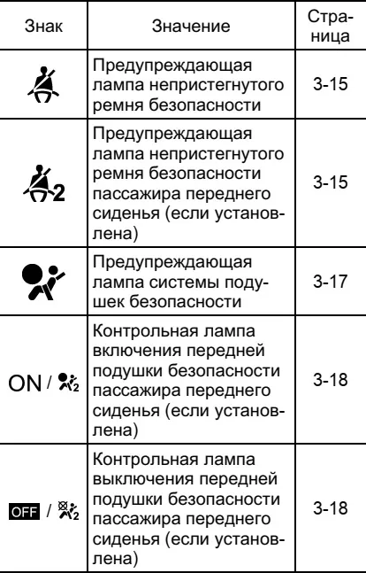 Контрольная лампа выключения подушки безопасность переднего пассажира.