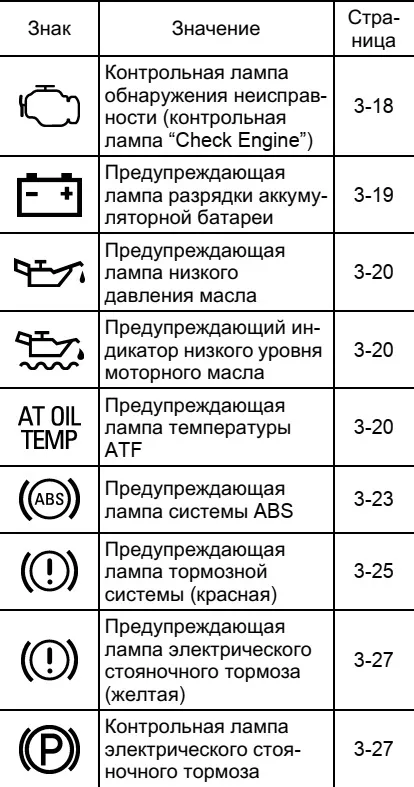 ![]() Индикатор рулевого усилителя Если индикатор светится при работающем двигателе, это говорит о проблемах в системе электрического рулевого усилителя. ОСТОРОЖНО ЗАМЕТКА |