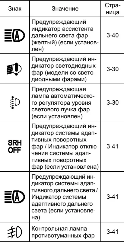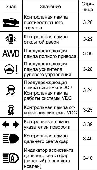 ![]() Индикатор ассистента дальнего света (зеленый) (если установлен) Этот индикатор активируется при включении ассистента дальнего света. Подробности читайте в разделе “Ассистент дальнего света” 3-60. |