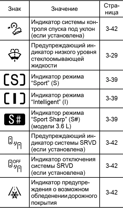 ![]() Индикатор отключения адаптивных поворотных фар (если установлены) Этот индикатор будет включаться при отключении функции адаптивных поворотных фар. В случае неисправности в системе он может мигать. Смотрите раздел “Система адаптивных поворотных фар” 3-65. |