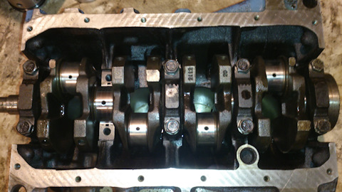 - Открутить болты крышек шатунных подшипников и снять крышки;