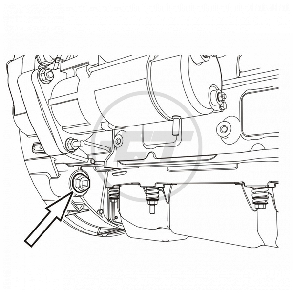 - Извлеките пробку для заправки масла на передней панели двигателя и установите в нее приспособление для проворота коленвала.