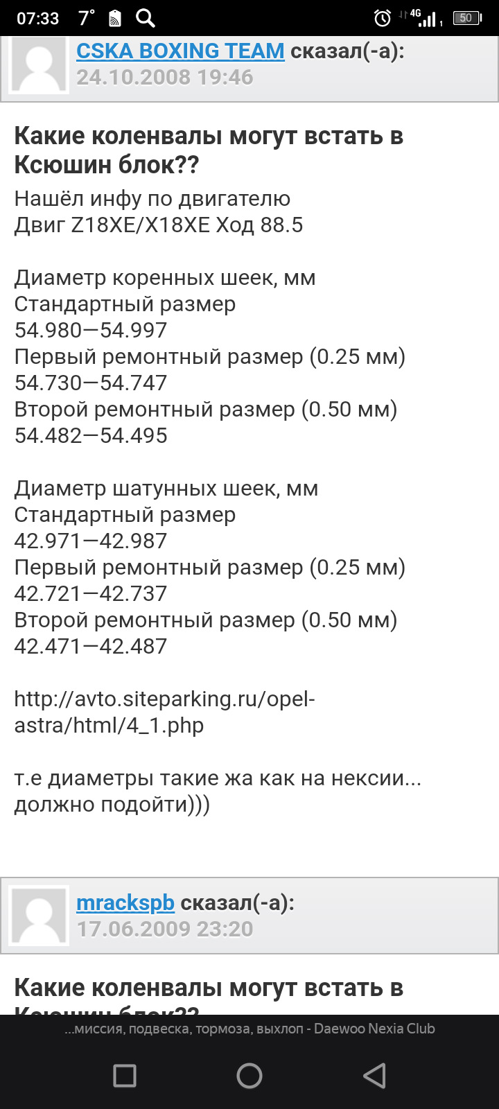 Примером стандартных размеров шеек коленвала может служить двигатель Z18XER. Для данного двигателя размеры шеек коленвала составляют: