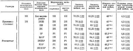 | Шейка коленвала | Диаметр (мм) | Длина (мм) |
