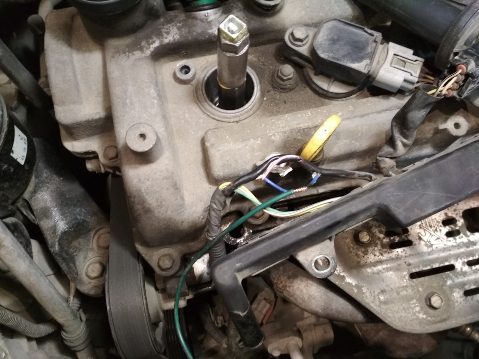 После поднятия автомобиля необходимо отсоединить провода, подключенные к датчику коленвала. Перед этим рекомендуется сделать фотографию или записать порядок подключения проводов, чтобы не запутаться в дальнейшем.
