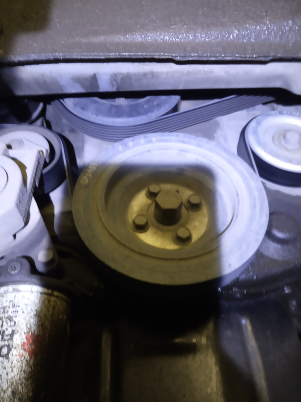 - Снимите ремень привода генератора и насоса гидроусилителя руля, чтобы получить доступ к виброгасителю коленвала.