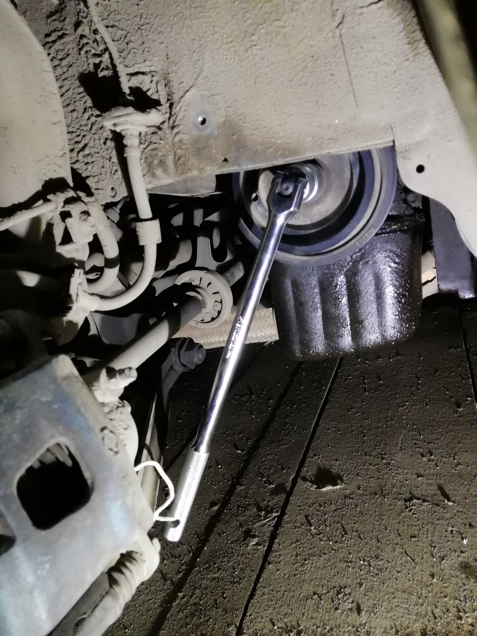 - Поднимите автомобиль на подъемнике или установите его на стойки, чтобы иметь свободный доступ к нижней части двигателя.