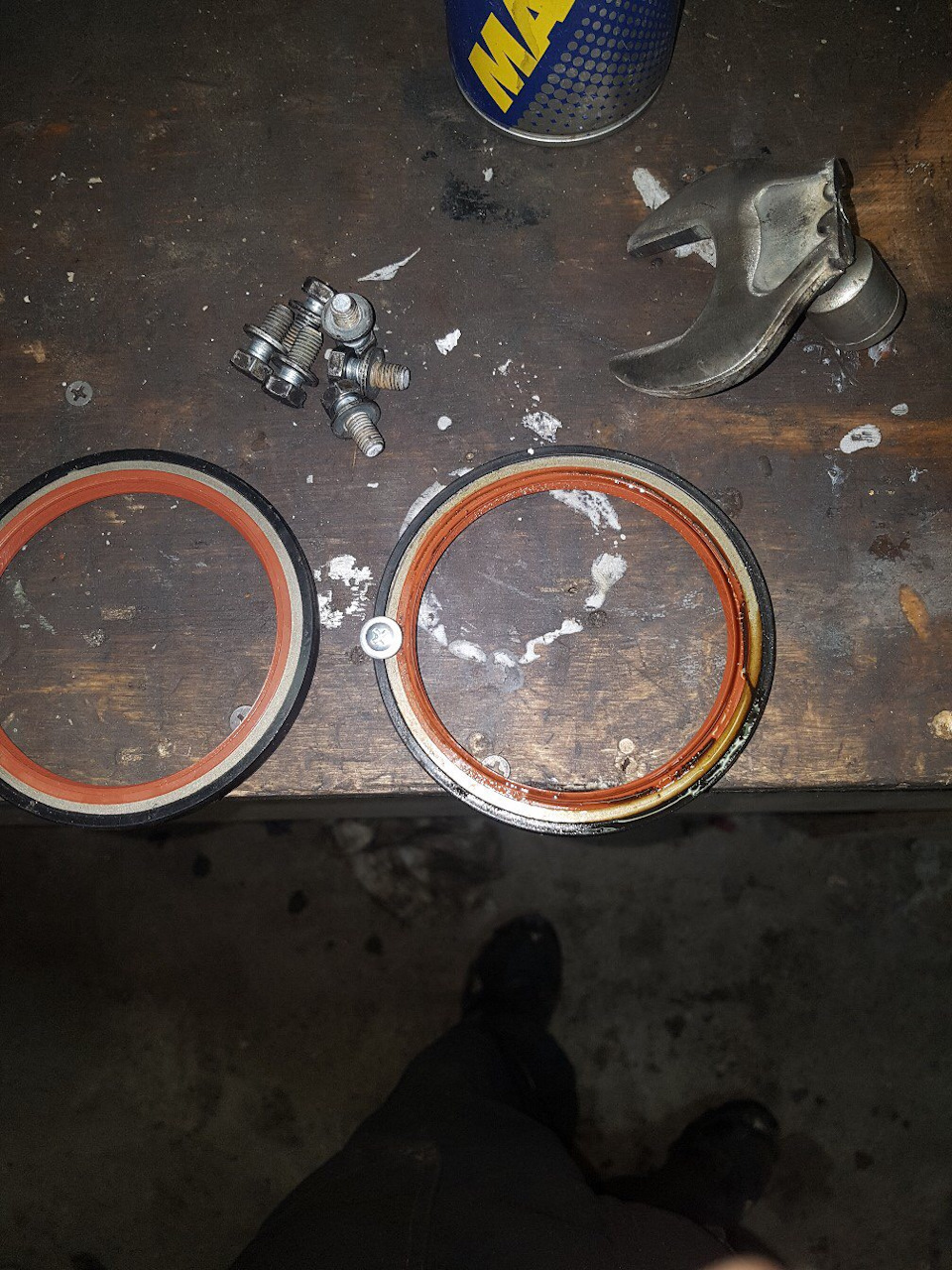 - Очистить область вокруг заднего сальника от грязи и масла.